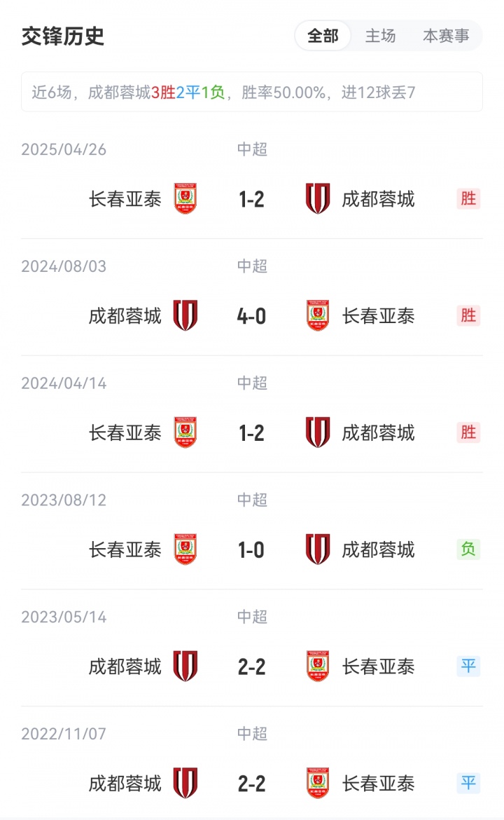 赛前成都蓉城排名榜首,领先身后的申花1分,长春亚泰排名垫底,落后保级区1分。近期战绩方面,蓉城近6场联赛5胜1平,亚泰近5场联赛2胜2平1负。