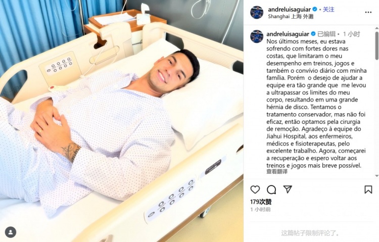 随后,安德烈-路易斯发布社媒:“在最近几个月里,我一直遭受严重的背部疼痛困扰,这限制了我的训练和比赛表现,也影响了日常家庭生活。但帮助球队的渴望如此强烈,以至于让我超越了身体极限,最终导致严重的腰椎间盘突出。我们尝试了保守治疗,但效果不佳,因此决定选择切除手术。感谢嘉会国际医院团队的出色工作,包括护士、医生和理疗师。现在我将开始康复过程,希望能尽早回归训练和比赛。”