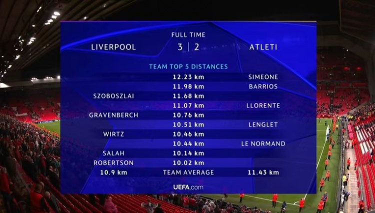 9月18日讯 欧冠联赛阶段第一轮比赛,利物浦主场3-2击败马竞,本场比赛朱利亚诺-西蒙尼跑动12.23公里全场最多。